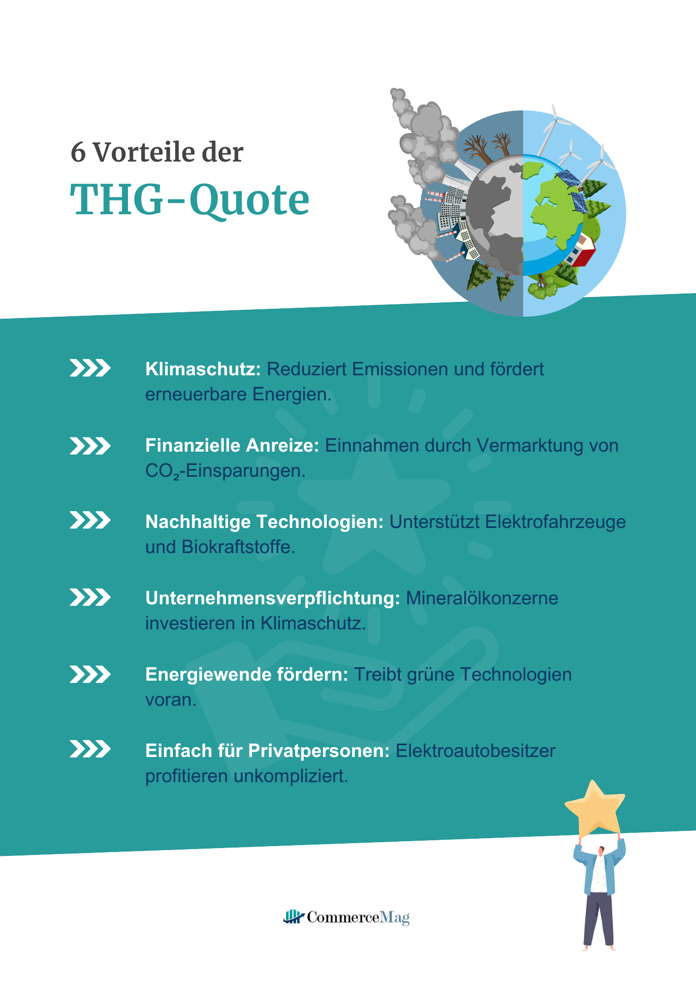 Die Politik fördert den Umstieg massiv mit Steuervorteilen und Förderprogrammen, sodass die THG-Prämie lediglich ein Segment der möglichen Verdienste für diese Leistung ist. Ein weiterer Vorteil besteht für den Umstieg in der positiven Außenwirkung, da sich Unternehmen mit elektrobetriebenem Fuhrpark durch ihren Beitrag für die weltweite Reduktion von Treibhausgasen zurecht als ökologisch verantwortungsvoll und engagiert präsentieren können. Dies wirkt sich positiv auf ihr Image aus. Abschließend werden in den Städten und Kommunen immer mehr Umweltzonen errichtet, die nur Autos mit geringen Emissionswerten befahren dürfen.