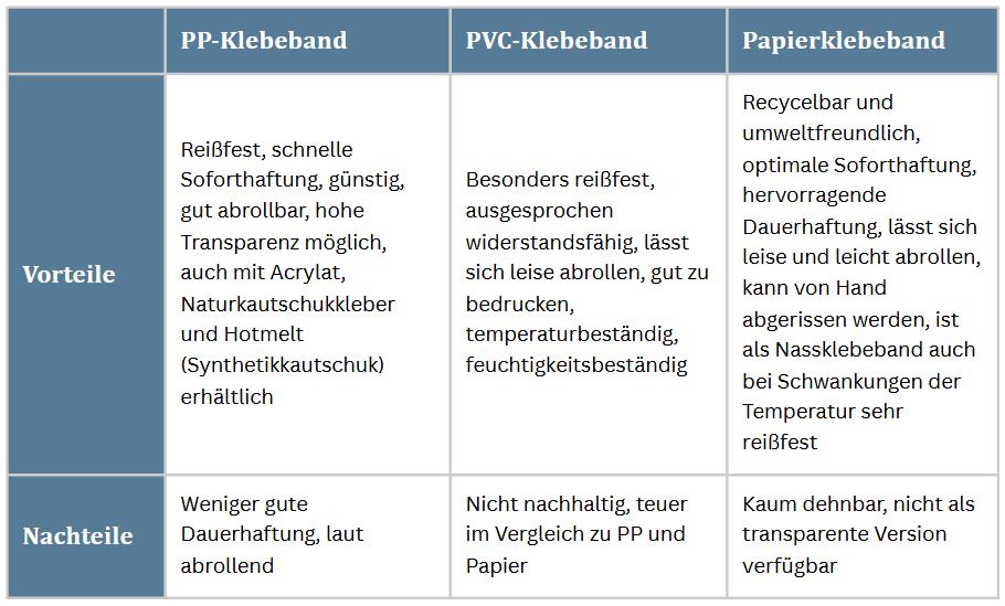 Die wichtigsten Klebebänder für den Versandhandel im Überblick:
