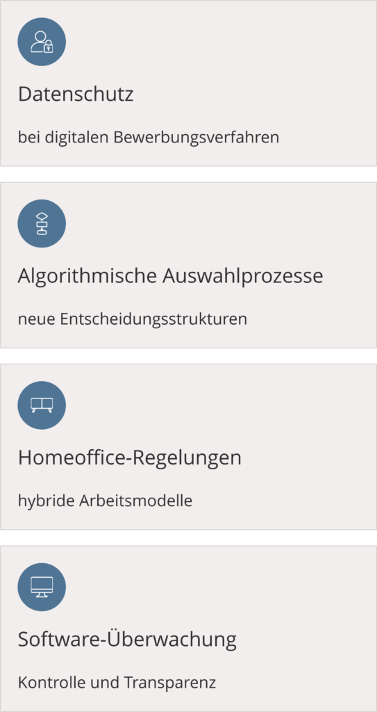 Datenschutz bei digitalen Bewerbungsverfahren, algorithmische Auswahlprozesse, Homeoffice-Regelungen oder Überwachung durch Softwarelösungen bringen Chancen, aber auch Herausforderungen mit sich. Der Personalrat ist in diesen Fragen gefordert, gleichzeitig Berater, Kontrolleur und Vermittler zu sein.